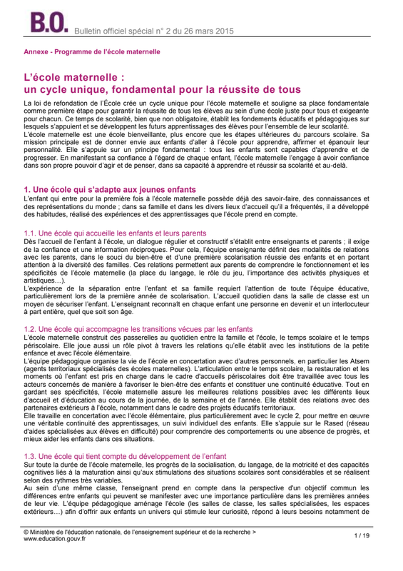Programmes de l'école maternelle