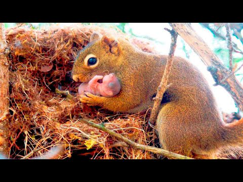 Un écureuil s'est accroché à un homme lui demandant de l'aide, car son petit était en difficulté.