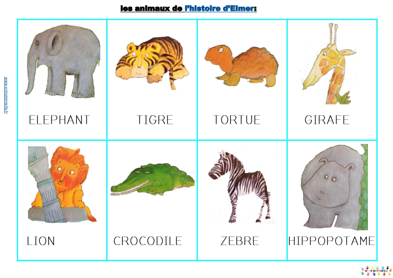 Lexique des animaux de l'album Elmer de MacKee