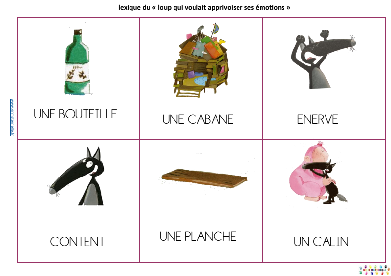 vocabulaire pour les PS sur l'album "Le loup qui apprivoisait ses émotions"