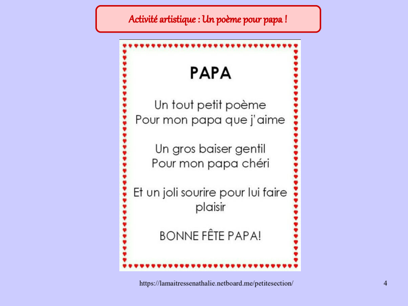 Activité artistique : Un poème pour Papa !