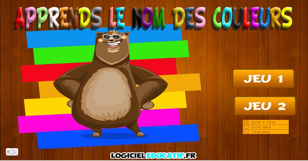 Jeu éducatif en ligne pour apprendre les couleurs ; apprendre à les reconnaître et apprendre à les lire et à les écrire. Cet exercice a pour but d'enseigner à l'enfant les principales couleurs ainsi que leurs noms.