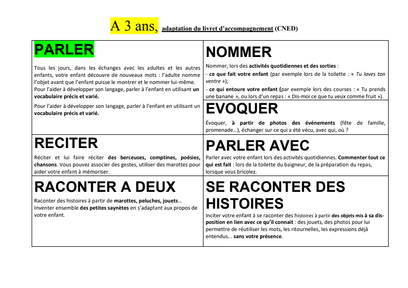 Tableau d'aide au livret d'accompagnement du Cned