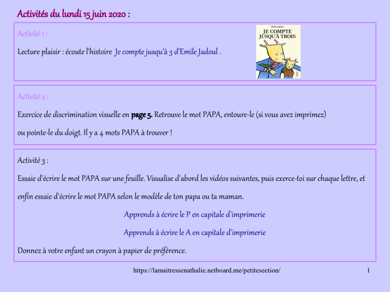 Des activités pour la fête des pères et un poème à apprendre pour dimanche ! ?