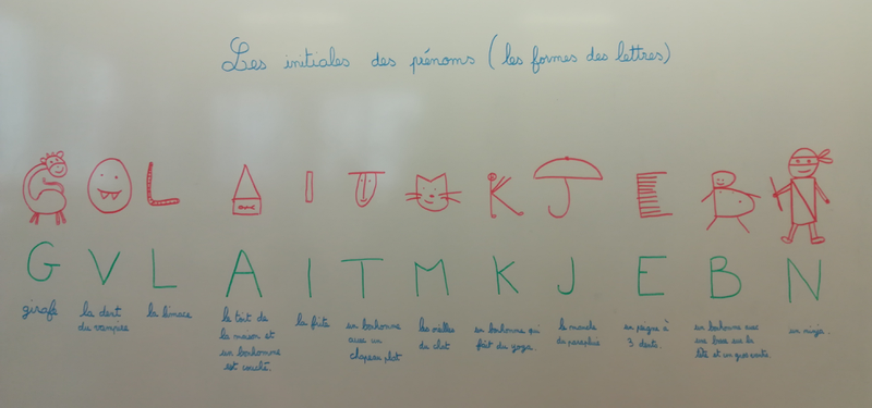 Apprentissage de la forme des lettres initiales des prénoms des élèves de la classe
